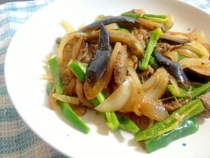 牛ロースと茄子のピリ辛味噌炒め 茄子料理3 牛ロース料理2